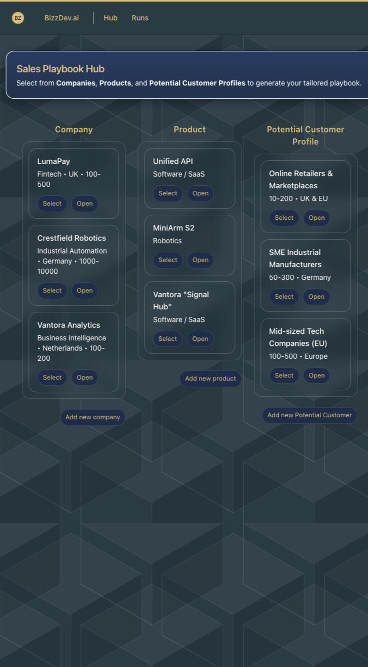 BizzDev.ai helps solopreneurs and lean sales teams prepare faster, reach out smarter and win across borders.