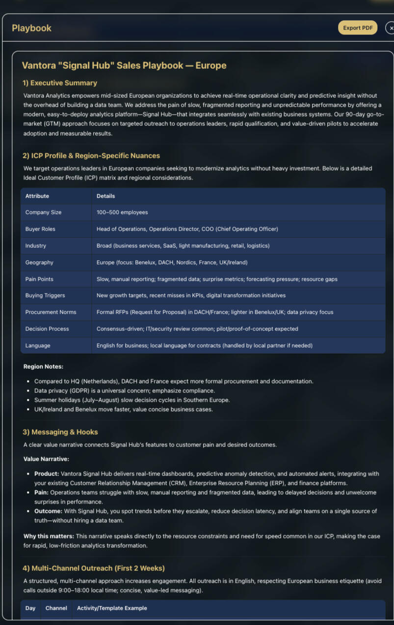 Turn your company, product and ICP info into a fully structured sales playbook that’s actually usable in real calls.